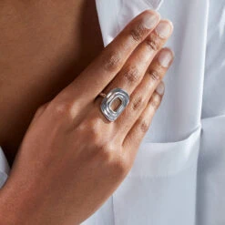Bague large ajustable en laiton plaqué or en forme de coquillage évidé. PM: 48/50 – MM: 52/54 – GM: 56/58