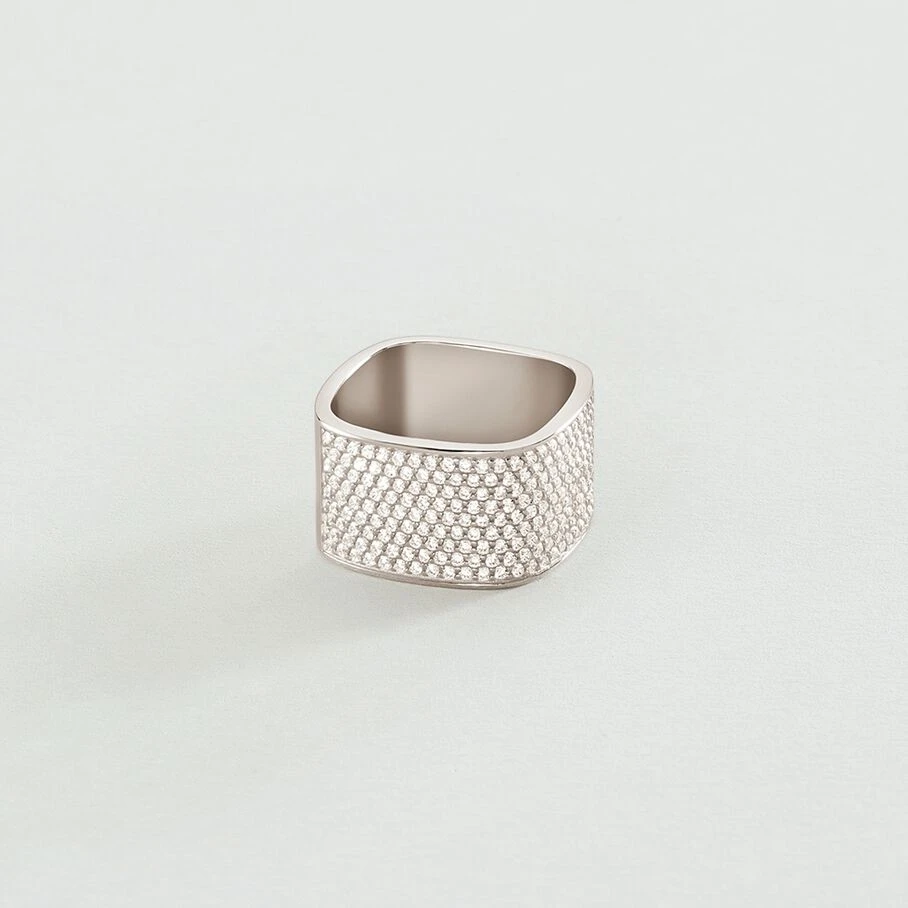Bague tonneau carrée, en argent véritable sertie de dizaines d’oxydes de zirconium scintillants. Une belle bague qui viendra compléter à la perfection vos tenues de soirée !