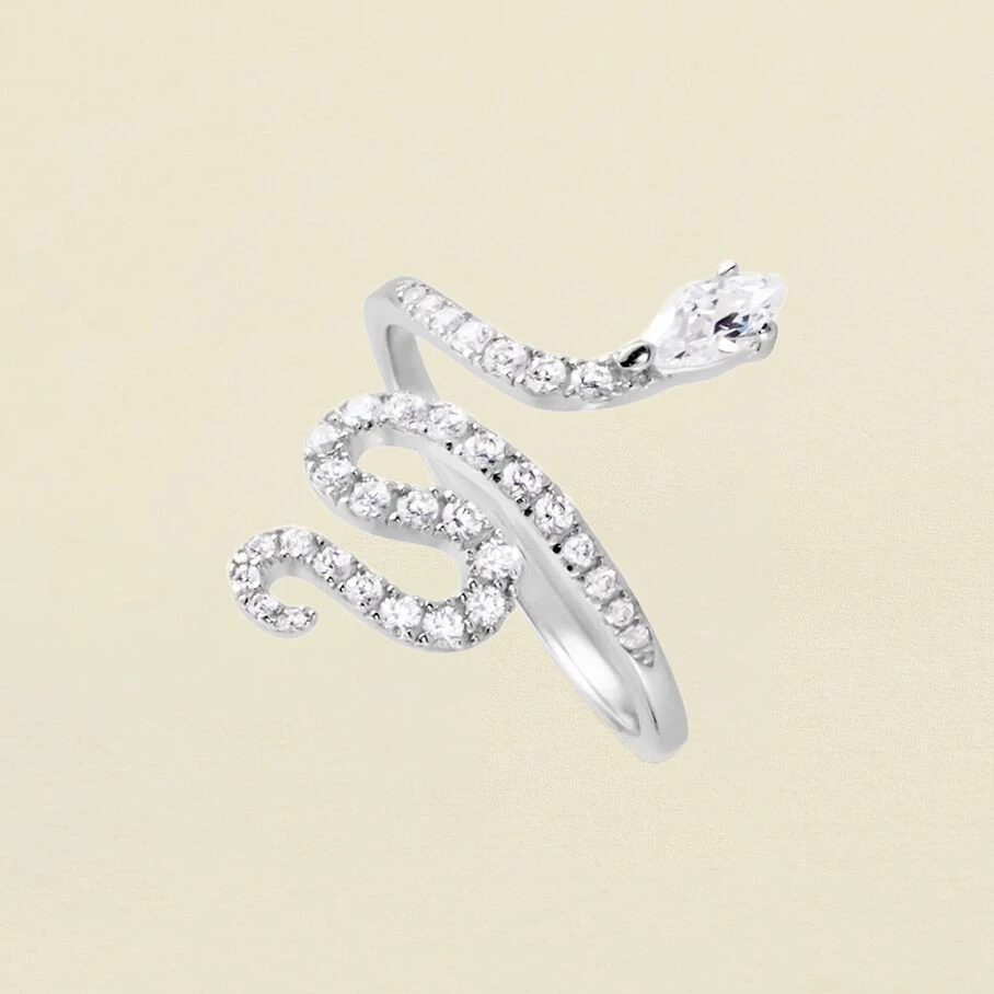 Bague pavée d’oxydes de zirconium, argent véritable, dont la forme évoque celle d’un serpent
