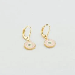 Boucles d’oreilles dormeuses, en laiton doré à l’or fin, avec un œil turc émaillé centré d’un oxyde de zirconium