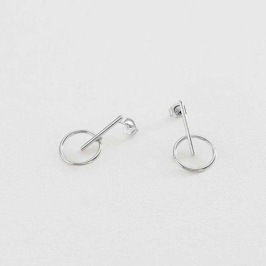 Boucles d’oreilles mi-longues, en argent véritable, composées d’un anneau évidé sur une barre