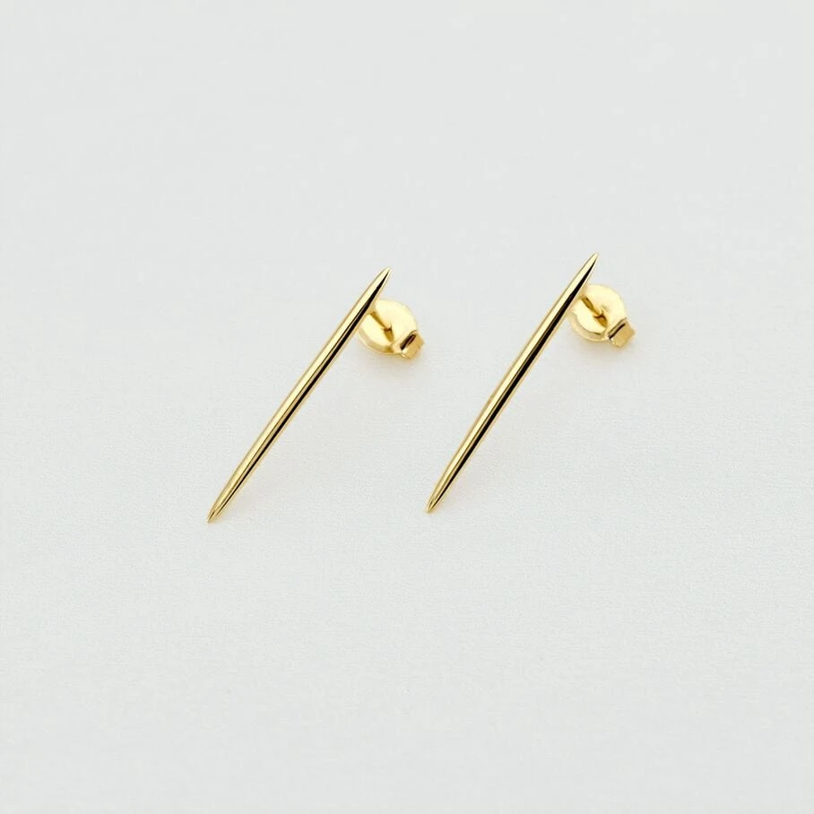Boucles d’oreilles linéaires, en argent véritable 925/1000 et dorées 750/1000, au motif rayon de soleil.