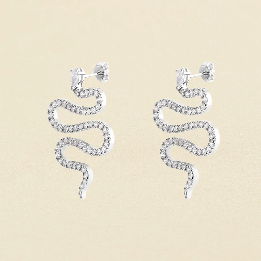 Boucles d’oreilles mi-longues, en argent véritable, pavées d’oxydes de zirconium et qui évoquent la forme d’un serpent