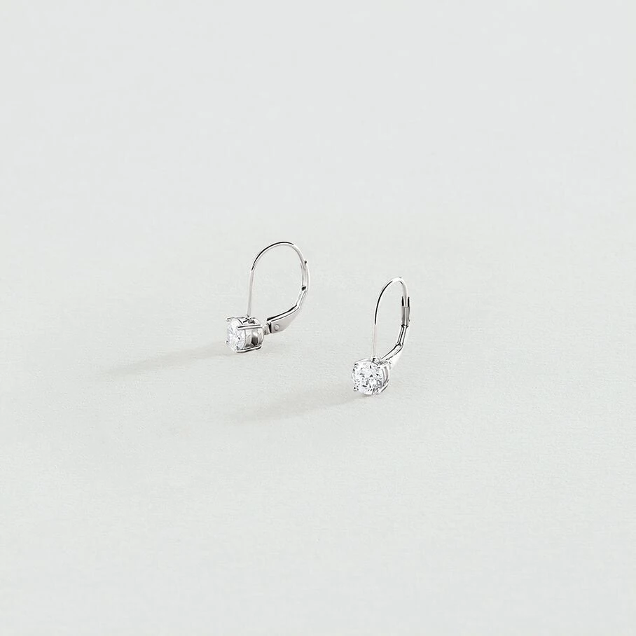 Boucles d’oreilles dormeuses, en argent véritable, avec un oxyde de zirconium griffé de 5mm de diamètre