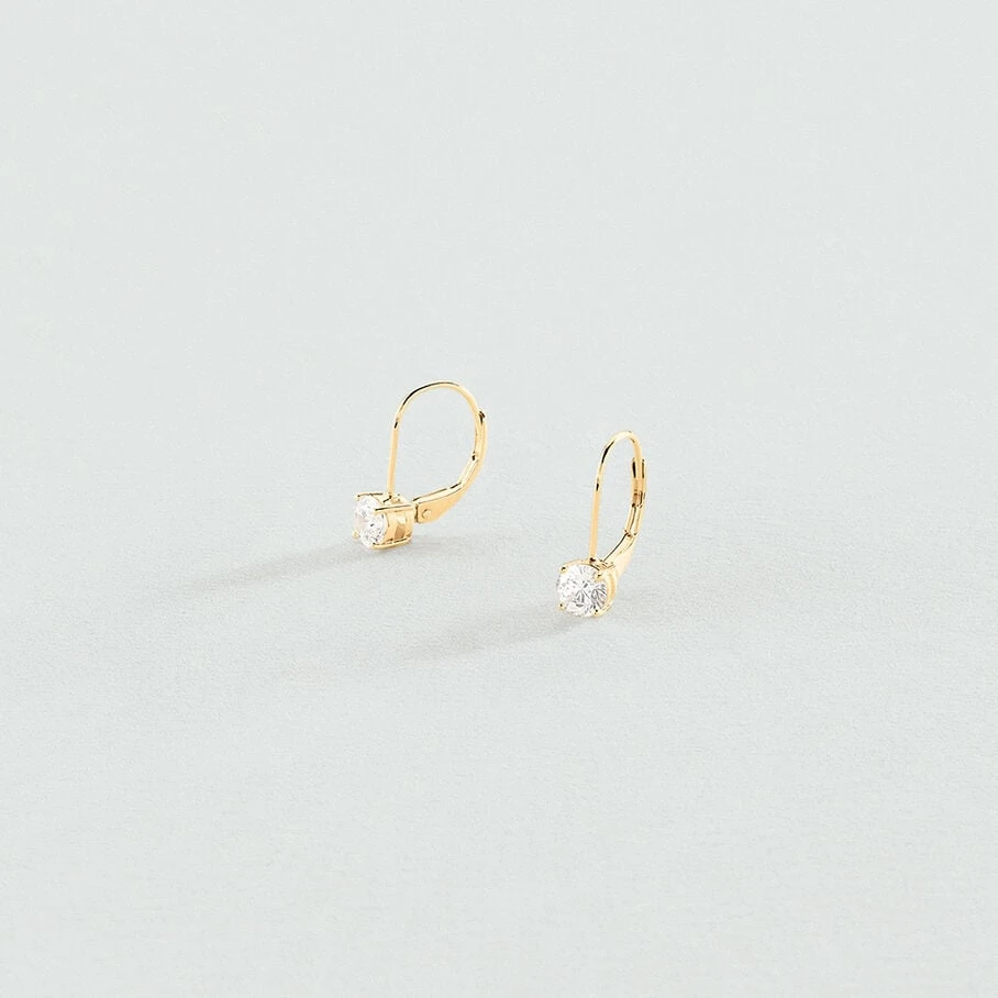Boucles d’oreilles dormeuses, en argent véritable doré à l’or fin, avec un oxyde de zirconium griffé de 5mm de diamètre