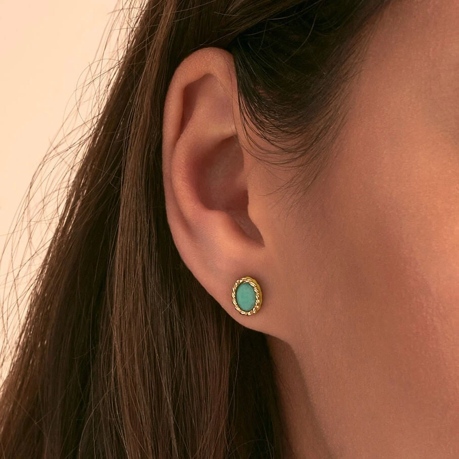 Boucles d’oreilles puces, en argent véritable 925/1000 dorées 750/1000, sertie d’une pierre fine. Un liseré d’émail, sur la tranche de la boucle, apporte une vraie touche d’originalité! Un modèle classique revisité pour affirmer style et personnalité!