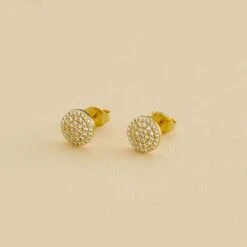 Boucles d’oreille puces, en argent véritable doré 750/1000, ornées de pastilles pavées d’oxydes de zirconium