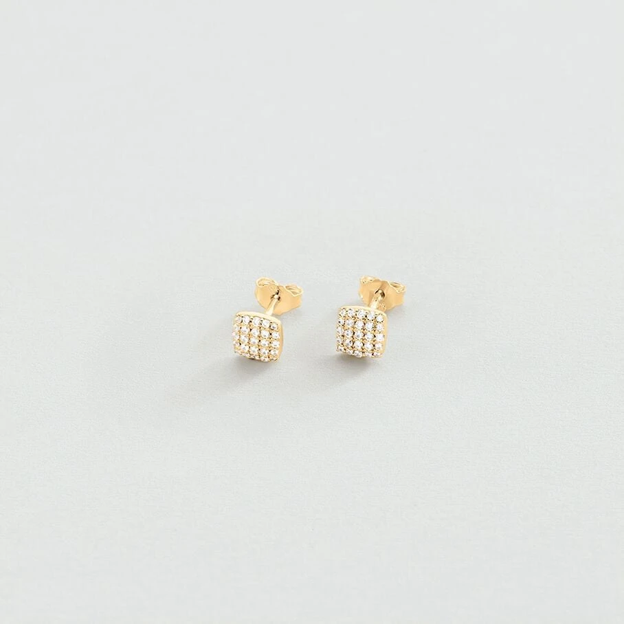 Boucles d’oreilles puces, en argent véritable doré 750/1000, en forme de coussin et serti d’oxydes de zirconium