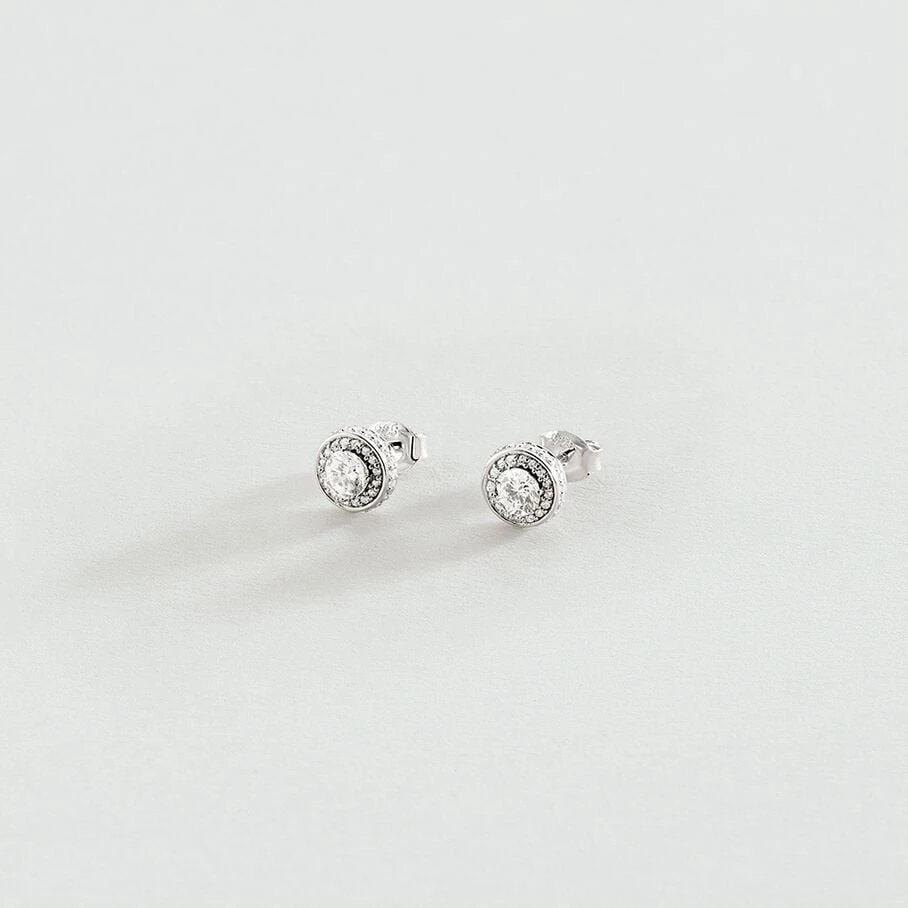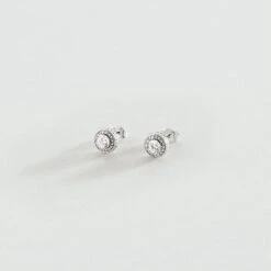 Boucles d’oreilles puces, en argent véritable, avec un mini oxyde rond autour duquel sont micro sertis des oxydes de zirconium
