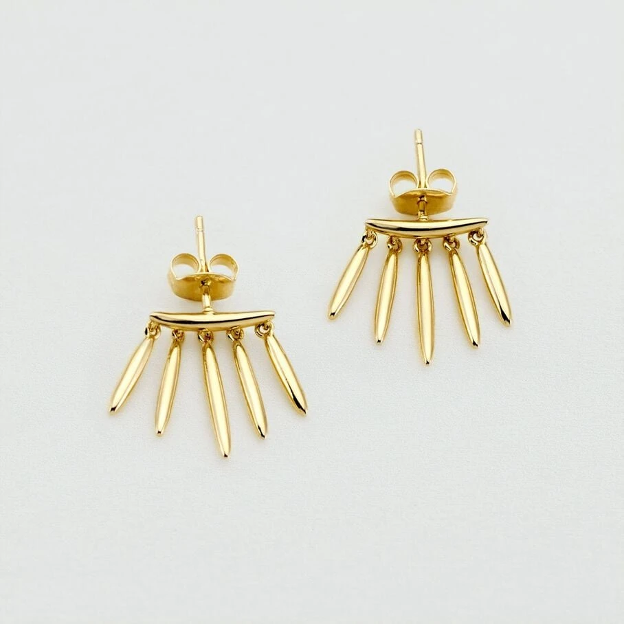 Boucles d’oreilles puces, en argent véritable 925/1000 et dorées 750/1000, ornées d’un rideau de pampilles rayonnantes.