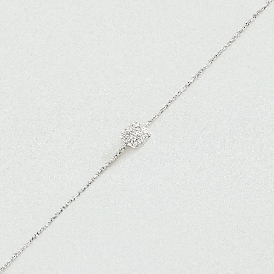 Bracelet chaine, en argent véritable, avec un pendentif en forme de coussin serti d’oxydes de zirconium