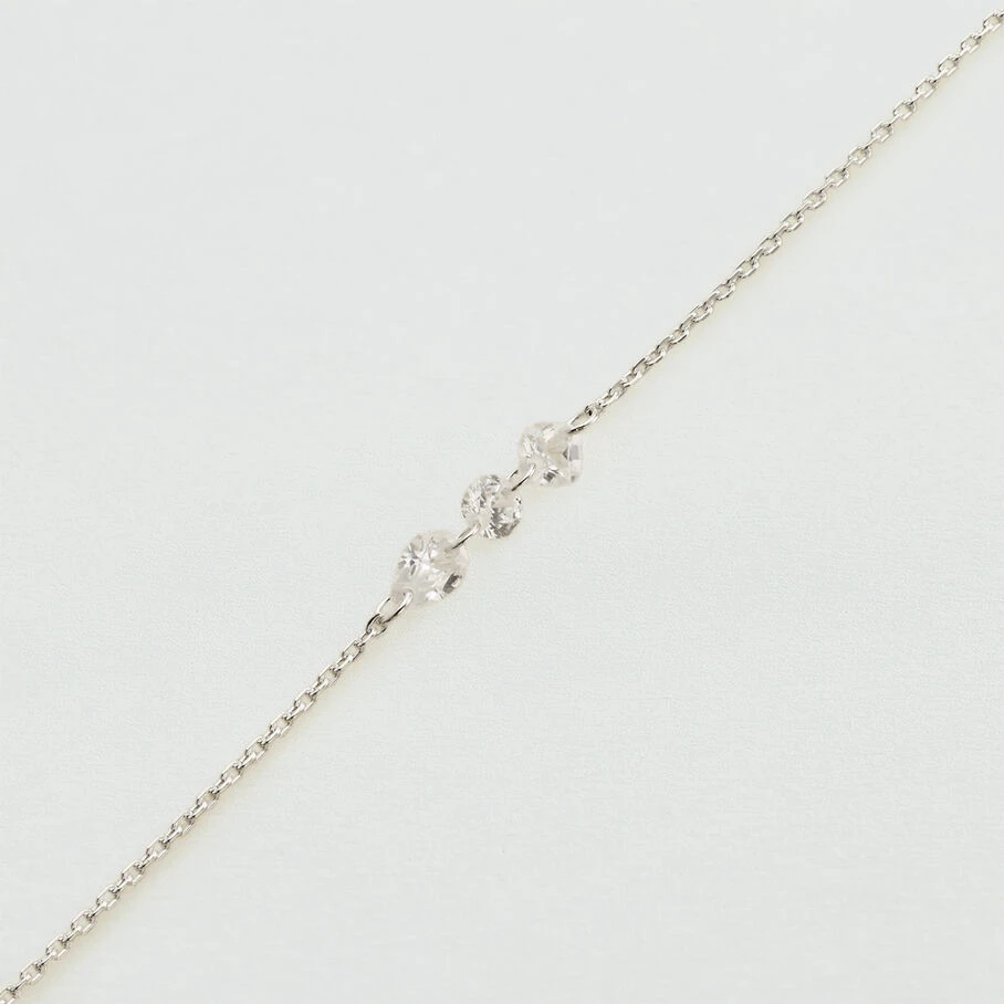 Bracelet fin, en argent véritable, avec une trilogie d’oxydes de zirconium percés en forme de poire, de rond et coussin