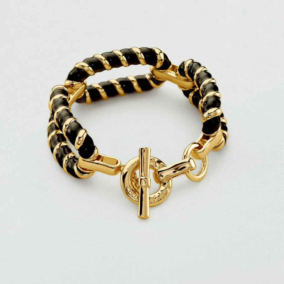 Bracelet, en laiton doré, 3 grands maillons effet torsadé en émail, fermoir batonnet