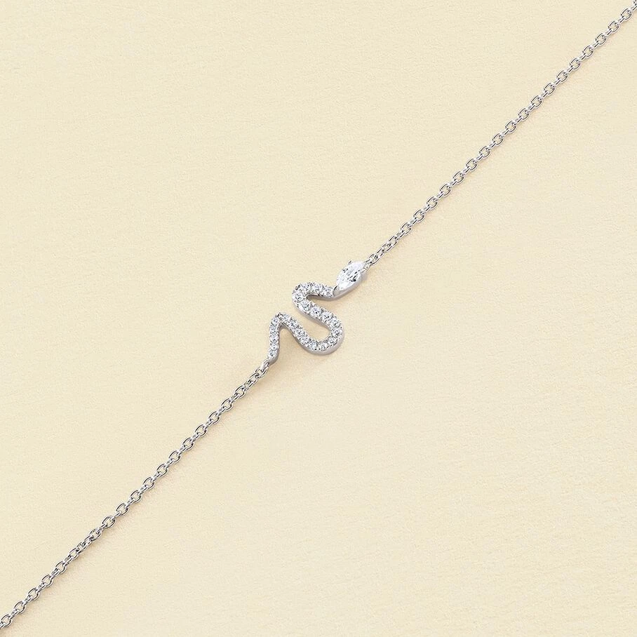 Bracelet souple en argent véritable orné d’un serpent pavé d’oxydes de zirconium