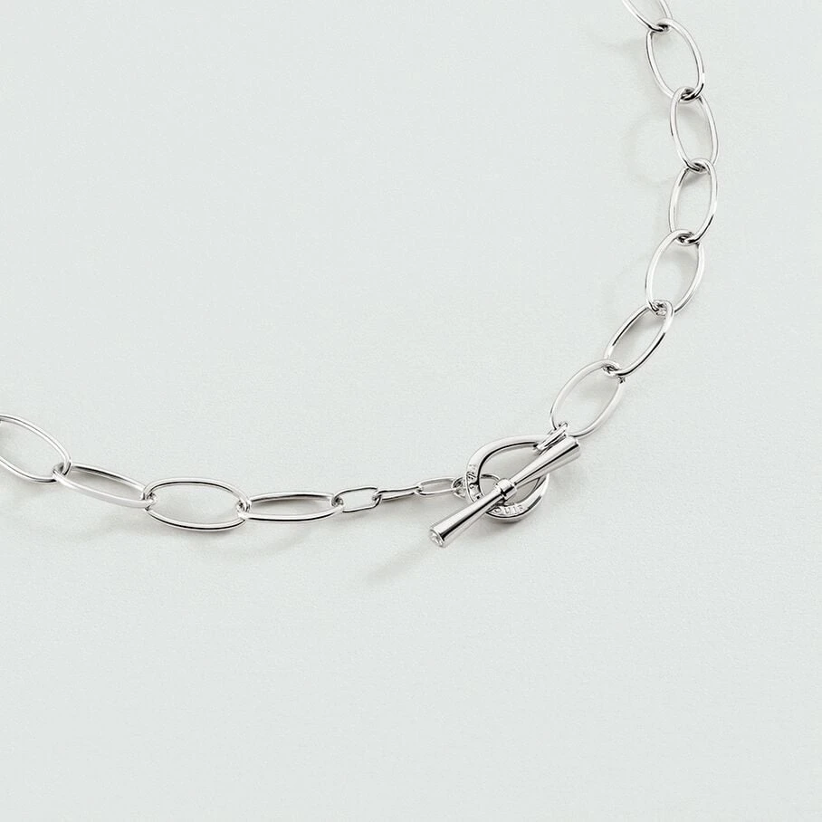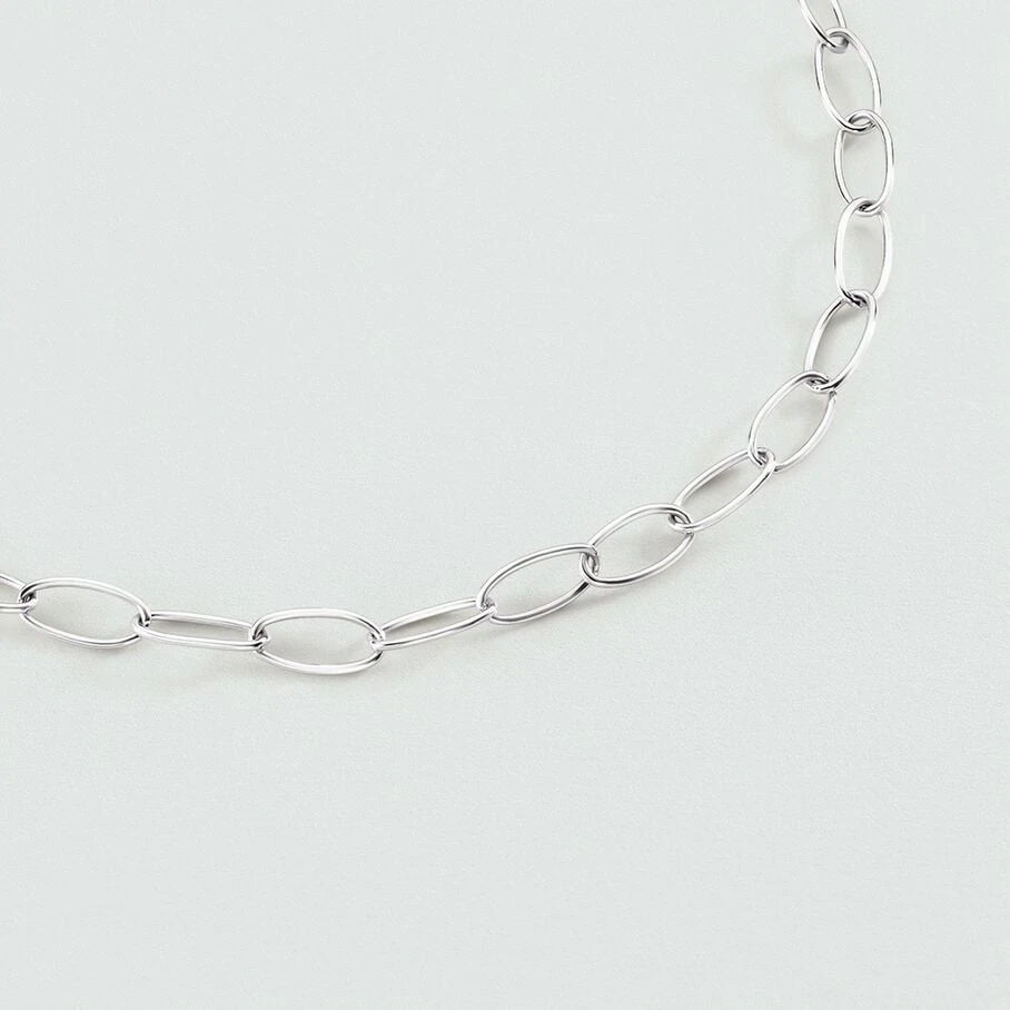 Collier chaine, en laiton rhodié, constitué de maillons ovales allongés