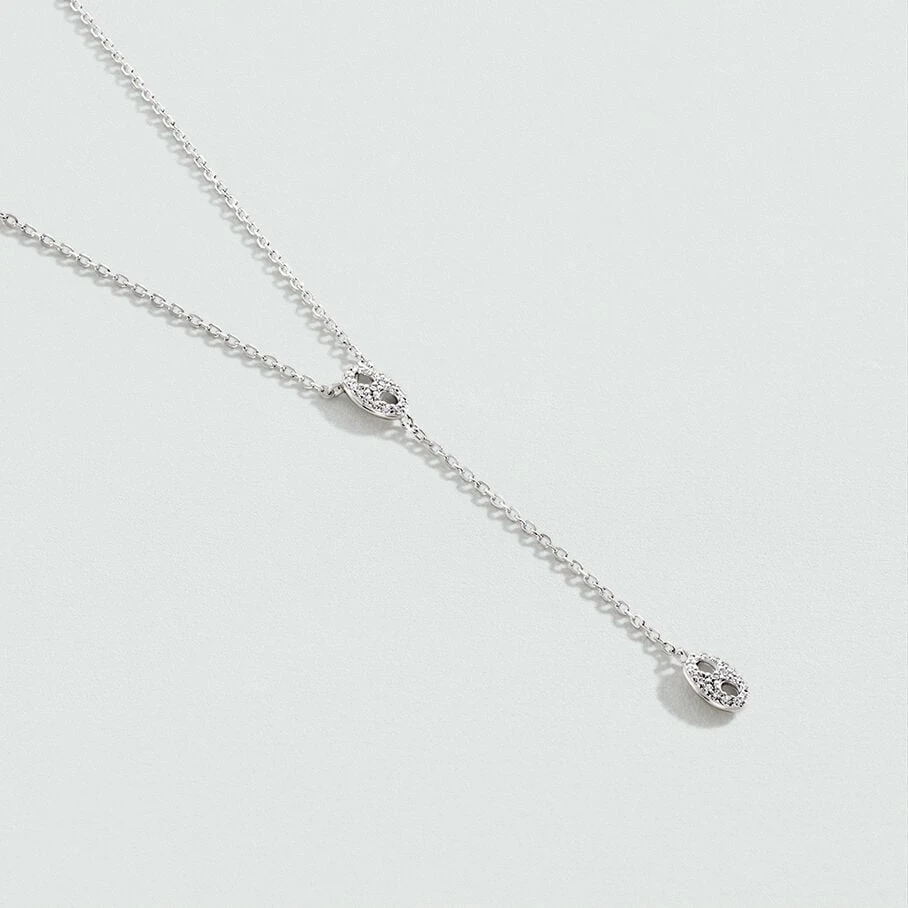 Collier Y, en argent véritable, avec deux grains de café, montés sur une fine chaine maille forçat