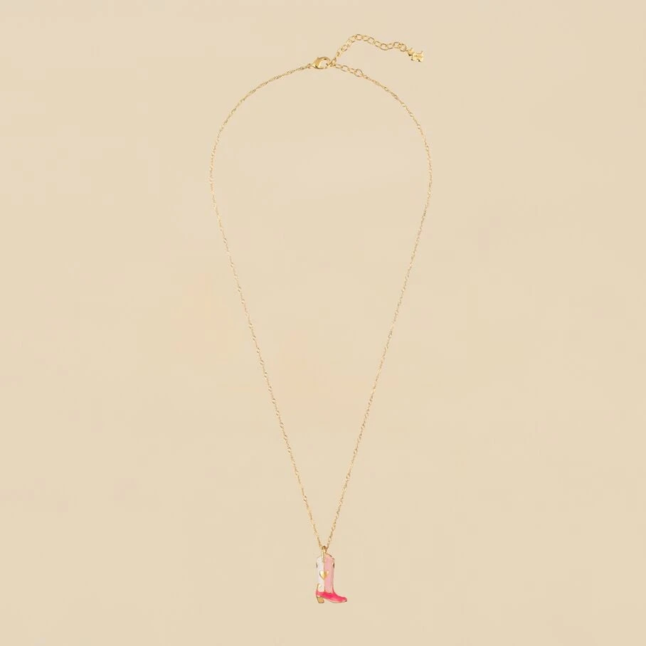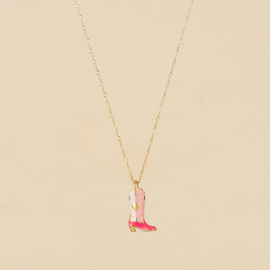 Collier mi-long, en laiton doré 750/1000, botte émaillée sur chaine