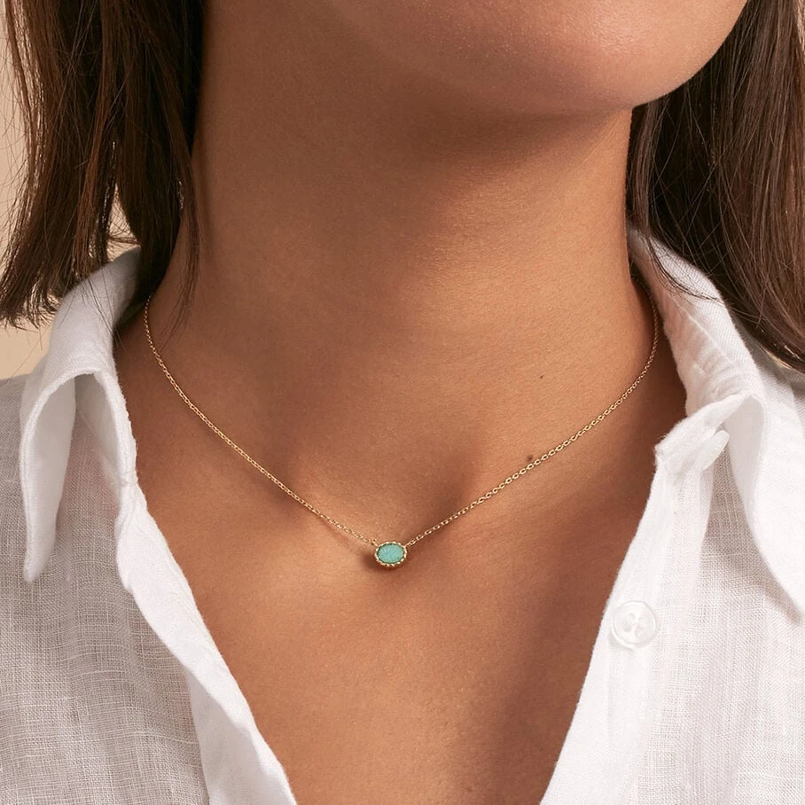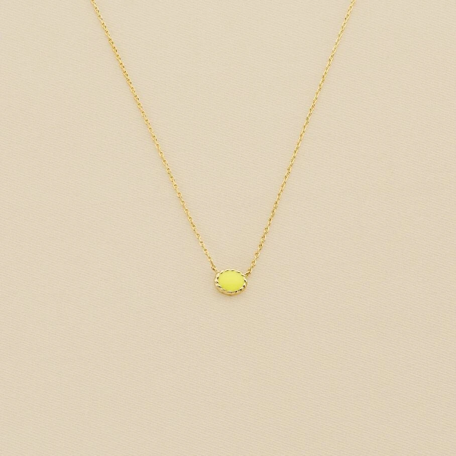 Collier court, en argent véritable 925/1000 et doré 750/1000, orné d’un pendentif monté d’une pierre fine d’un côté et émaillé de l’aute côté. La torsade, véritable signature de la marque, est apportée en touche notamment sur la bordure du pendentif! Un collier au double porté pour accorder à son humeur et à ses tenues!