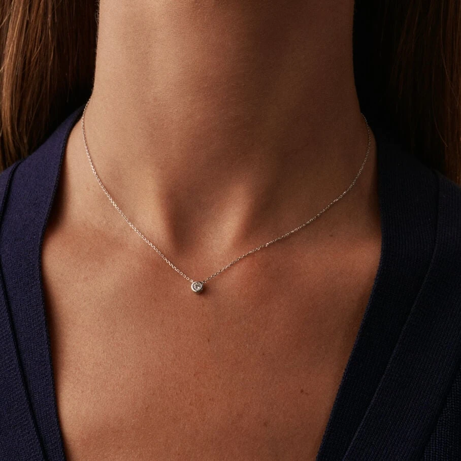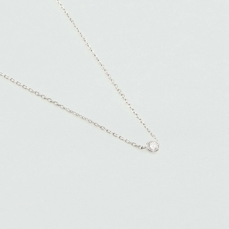 Collier court en argent véritable orné d’un oxyde de zirconium serti clos
