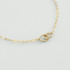 Collier, chaine maille rectangle, en argent 925/1000 et doré 750/1000, dont le prendentif représente deux gouttes entrelacées et serties d’oxydes de zirconium sur la tranche extérieure