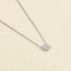 Collier court, en argent véritable, avec un pendentif en forme de coussin serti d’oxydes de zirconium