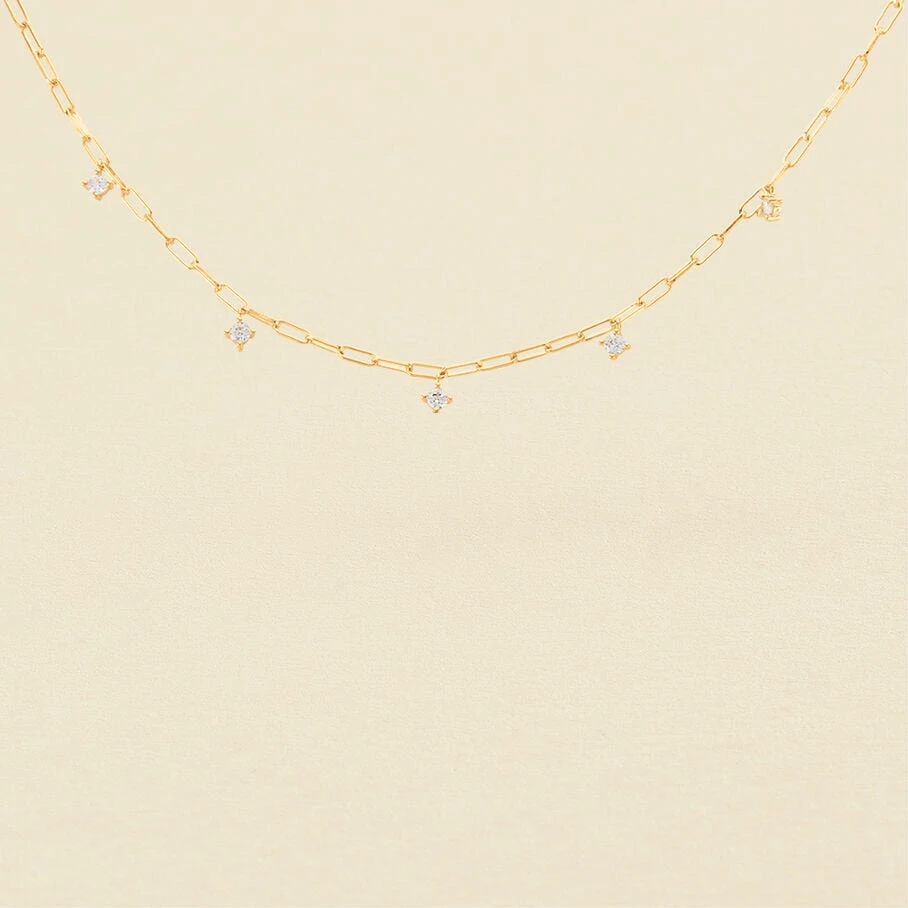 Collier court, chaine rectangle avec 5 oxydes de zirconium sertis griffes, en argent doré 750/1000