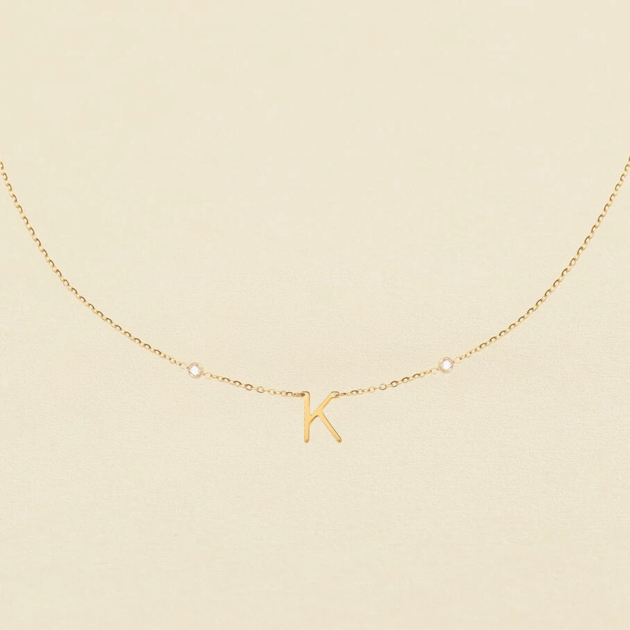 Collier fin composé de la lettre K et de deux oxydes de zirconium. Longueur: 42cm