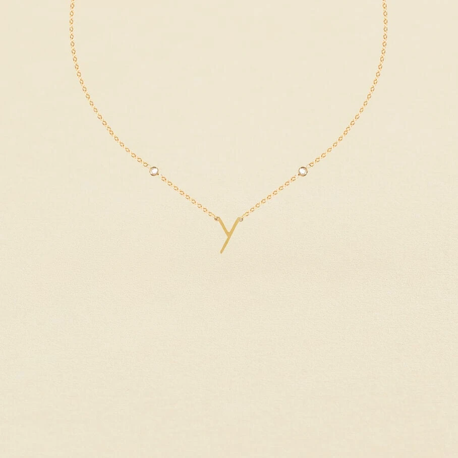 Collier fin composé de la lettre Y et de deux oxydes de zirconium. Longueur: 42cm