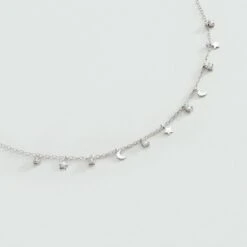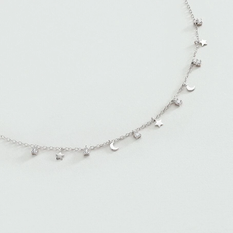Collier court en argent véritable, multi pampilles lunes, étoiles et oxydes de zirconium griffés