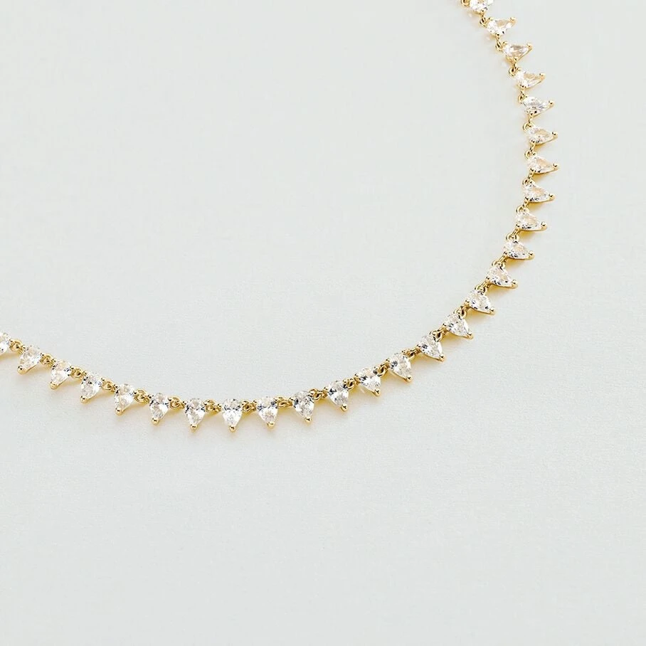 Collier court, en laiton doré 750/1000, entièrement sertis d’oxydes de zirconium de forme trillion
