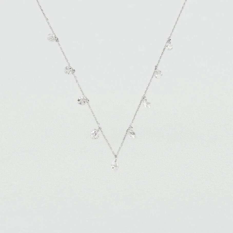 Collier court, en argent véritable, avec des oxydes de zirconium percés, en pampilles, en forme de poire, de rond et coussin