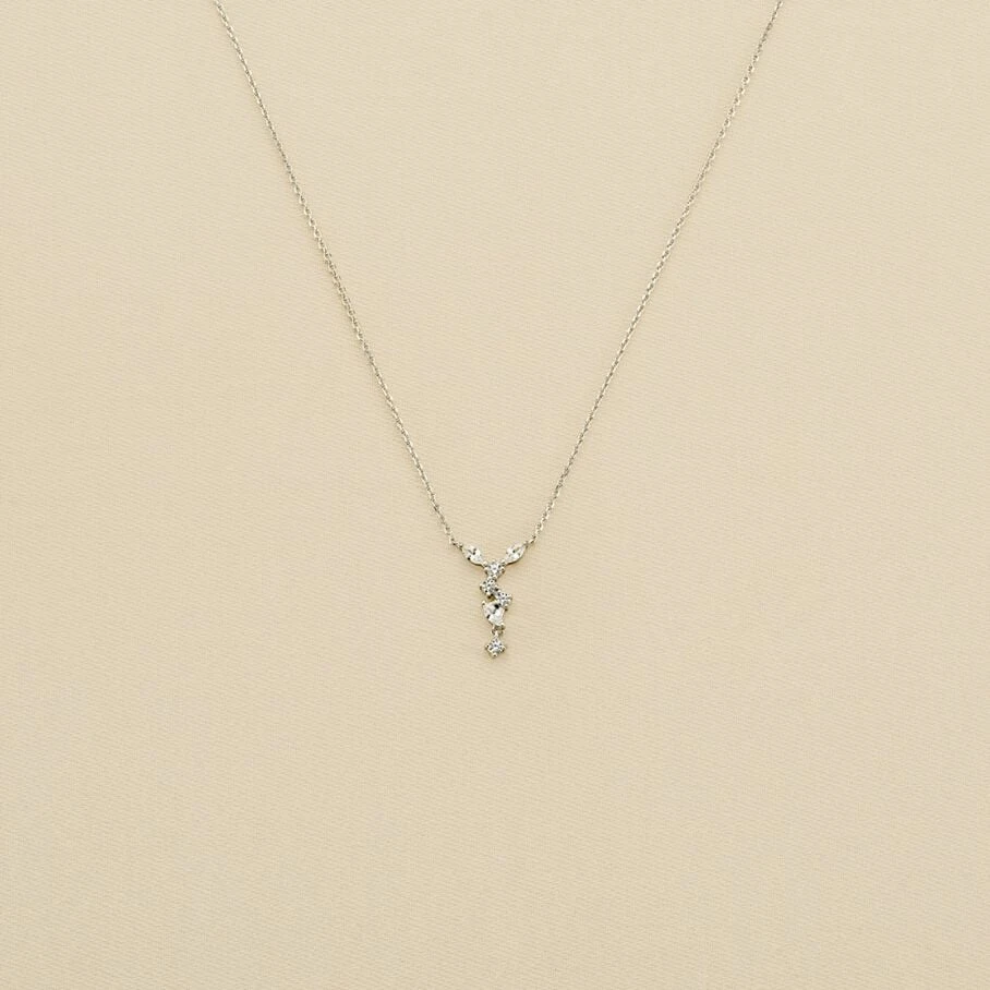 Collier court, en argent véritable, dont la partie centrale, légèrement pendante, est finement sertie d’oxydes de zirconium et d’oxydes en forme marquise