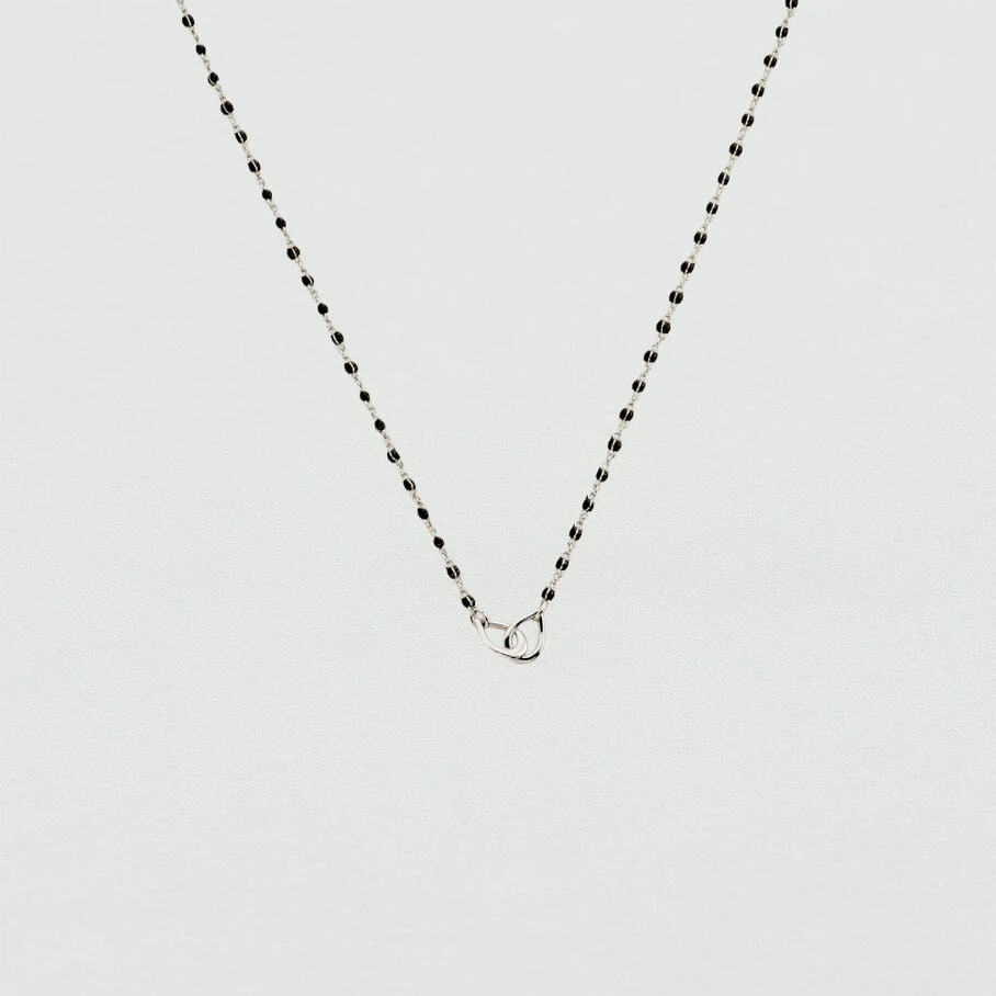 Collier court, laiton, perles d’émail sur chaîne et 2 anneaux gouttes entrelaçés