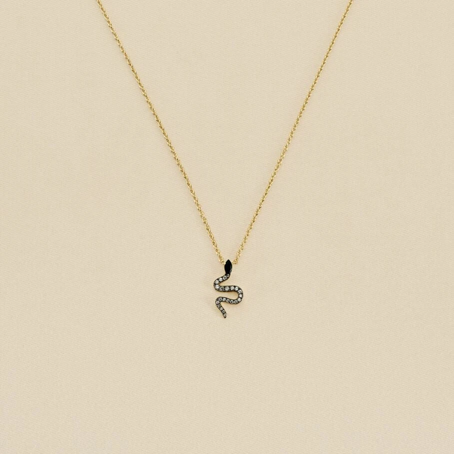 Collier court en argent véritable doré 750/1000, orné d’un serpent pavé d’oxydes de zirconium