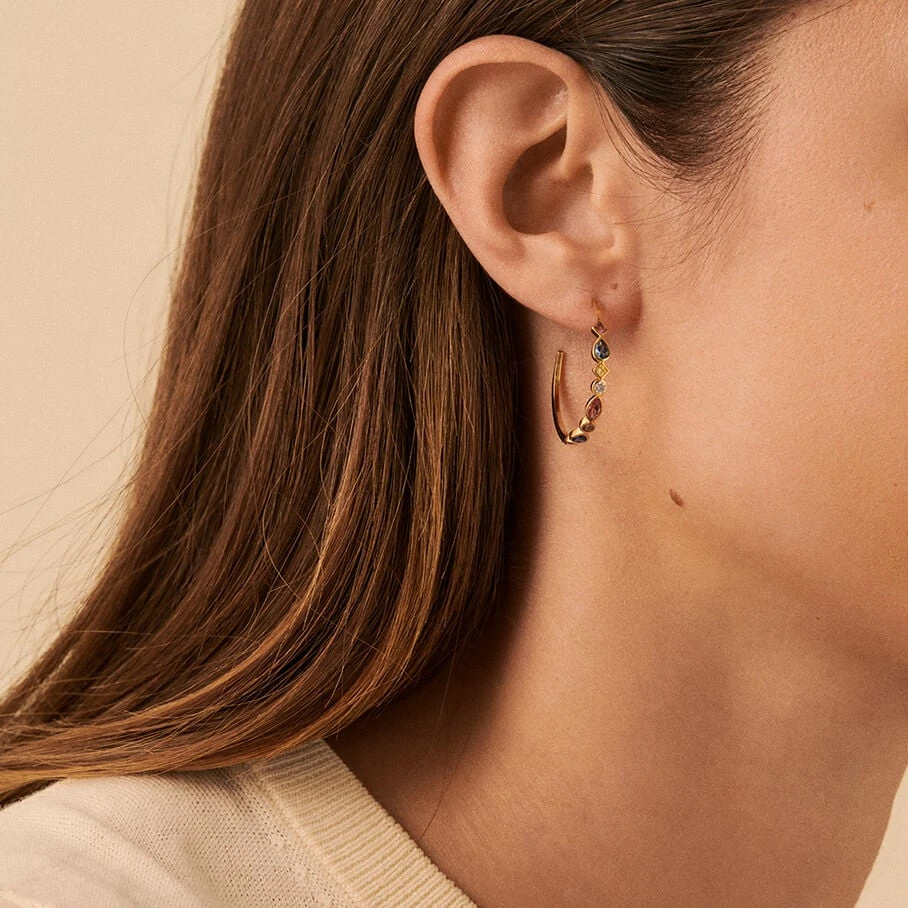 Créoles en laiton doré 750/1000 avec des oxydes de zirconium de différentes formes