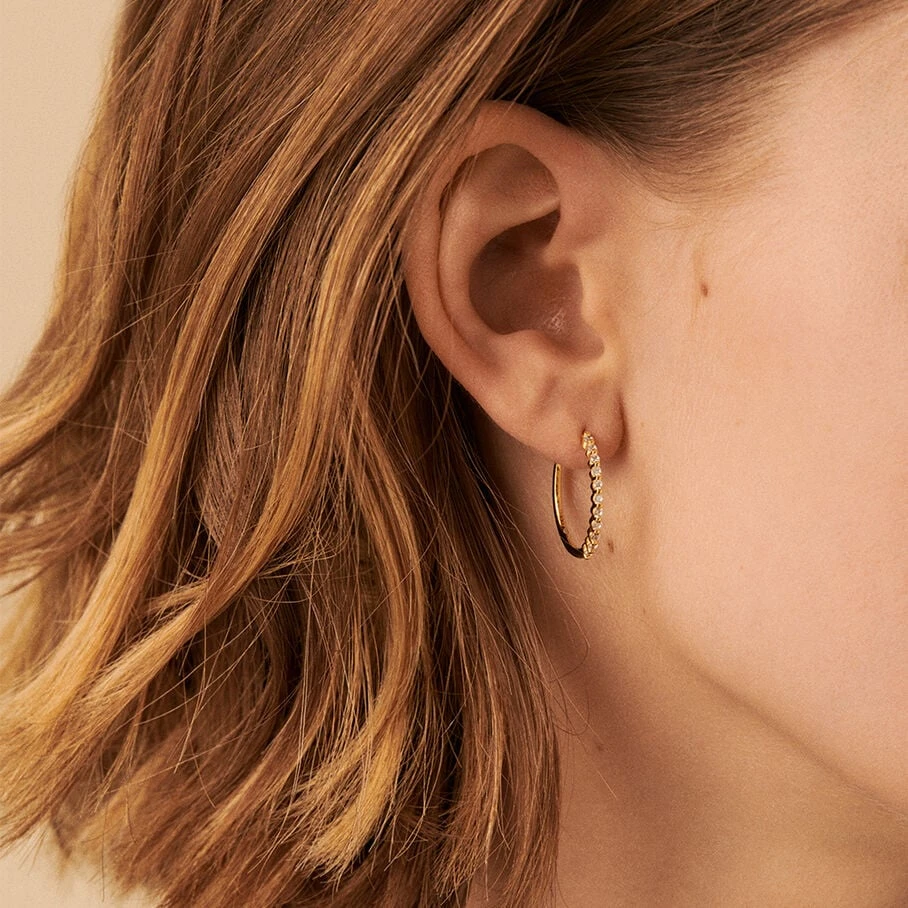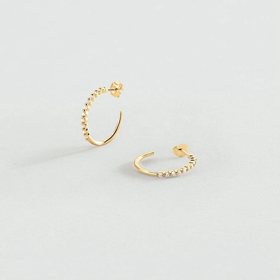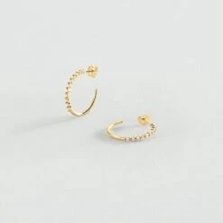 Créoles de 20mm de diamètre, en argent 925/1000 doré 750/1000, sur laquelle ont été sertis clos une série d’oxydes de zirconium