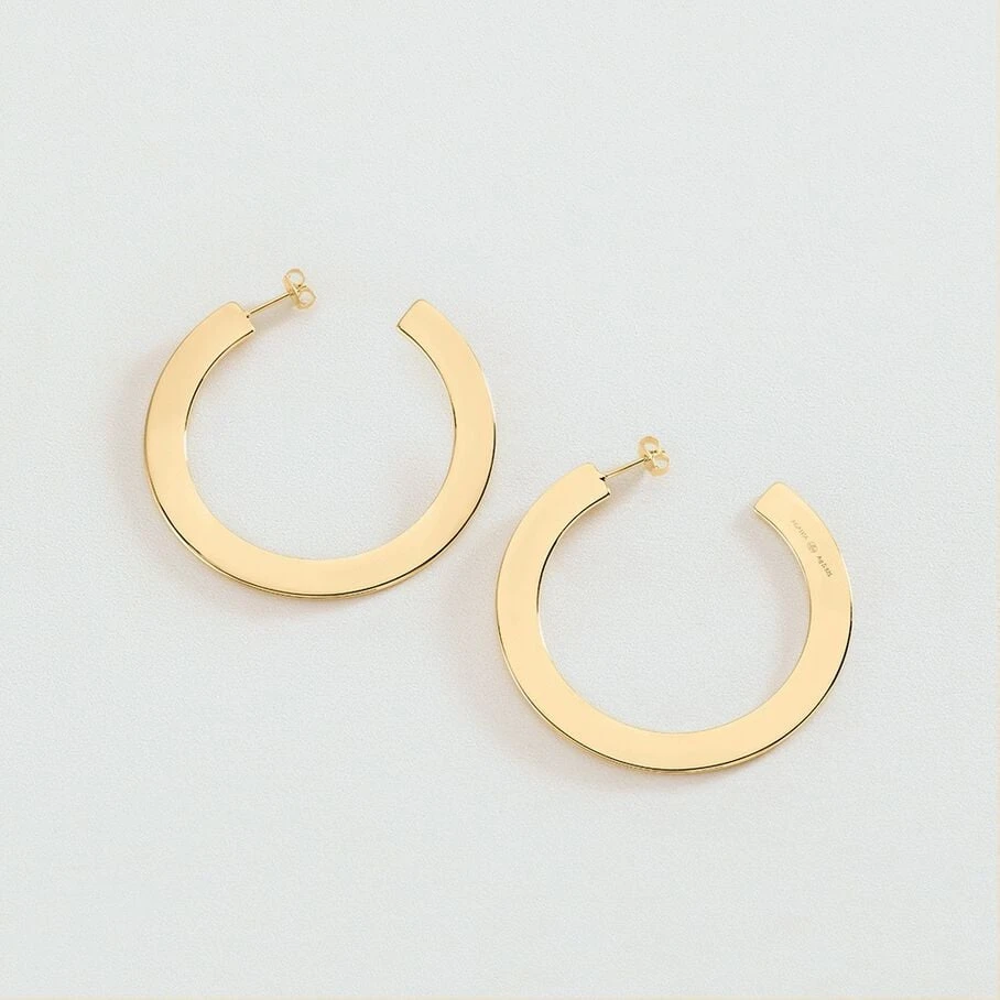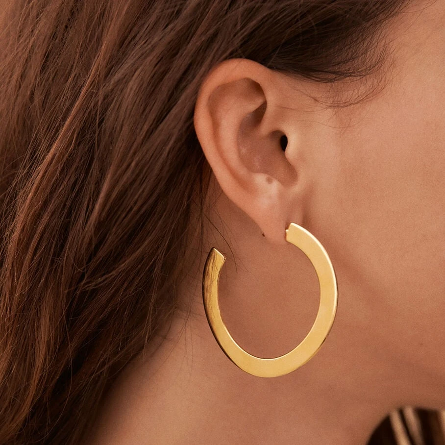 Créoles avec un fil plat, en argent véritable doré 750/1000