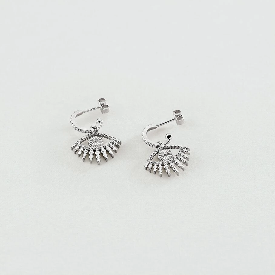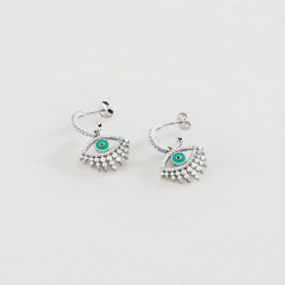 Créoles de 14mm de diamètre, en argent véritable 925/1000, sur lesquelles un œil turc a été ajouté en breloque. L’iris émaillé et le contour de l’œil serti d’oxydes de zirconium apportent un vrai raffinement et éclat au produit! Au besoin la breloque peut se retirer pour un look déparaillé ou encore un look plus simple avec de petites créoles serties d’oxydes de zirconium seulement. Des boucles d’oreilles 3 en 1 à porter au gré de vos tenues et humeur!