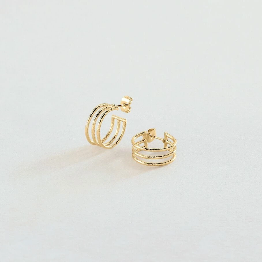 Créoles de 16.5mm de diamètre, en laiton doré 750/1000, faites de plusieurs fils texturés