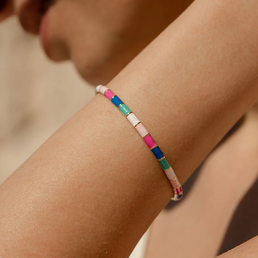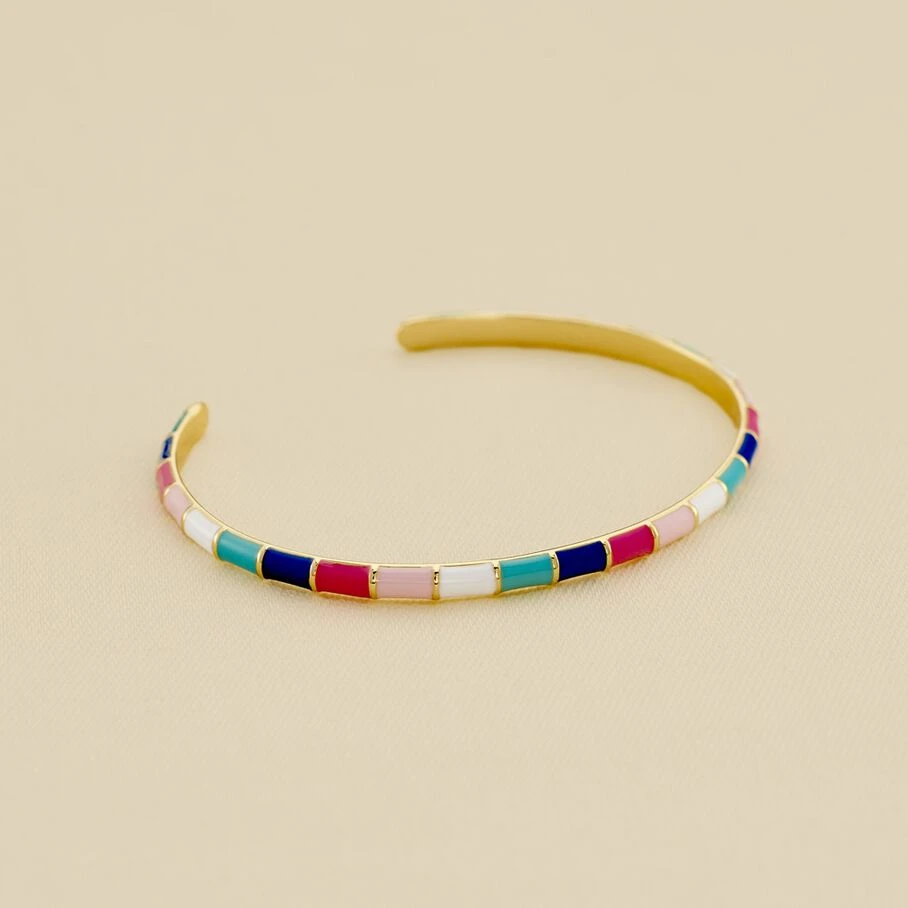 Jonc ouvert, en laiton doré 750/1000, sections émaillées multicolores