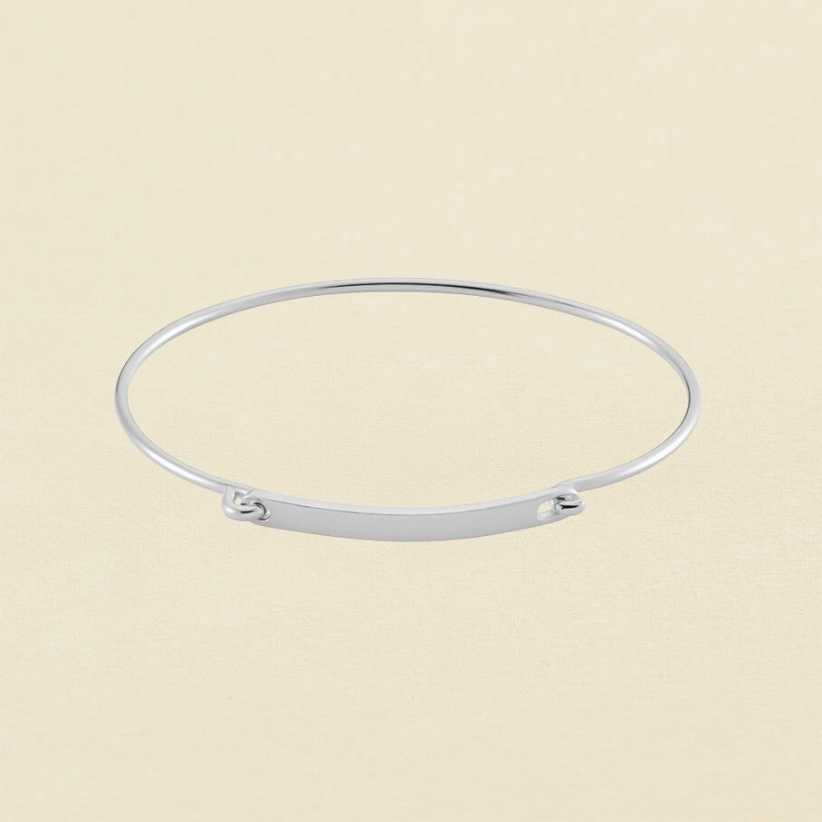 Bracelet jonc en argent véritable avec une plaque mobile sur laquelle les charms peuvent se cumuler.