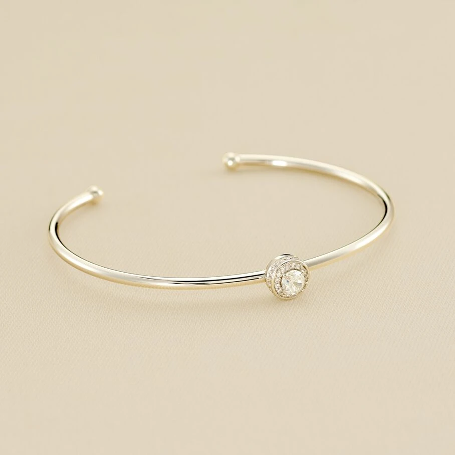 Jonc, en argent véritable, avec un mini oxyde rond autour duquel sont micro sertis des oxydes de zirconium