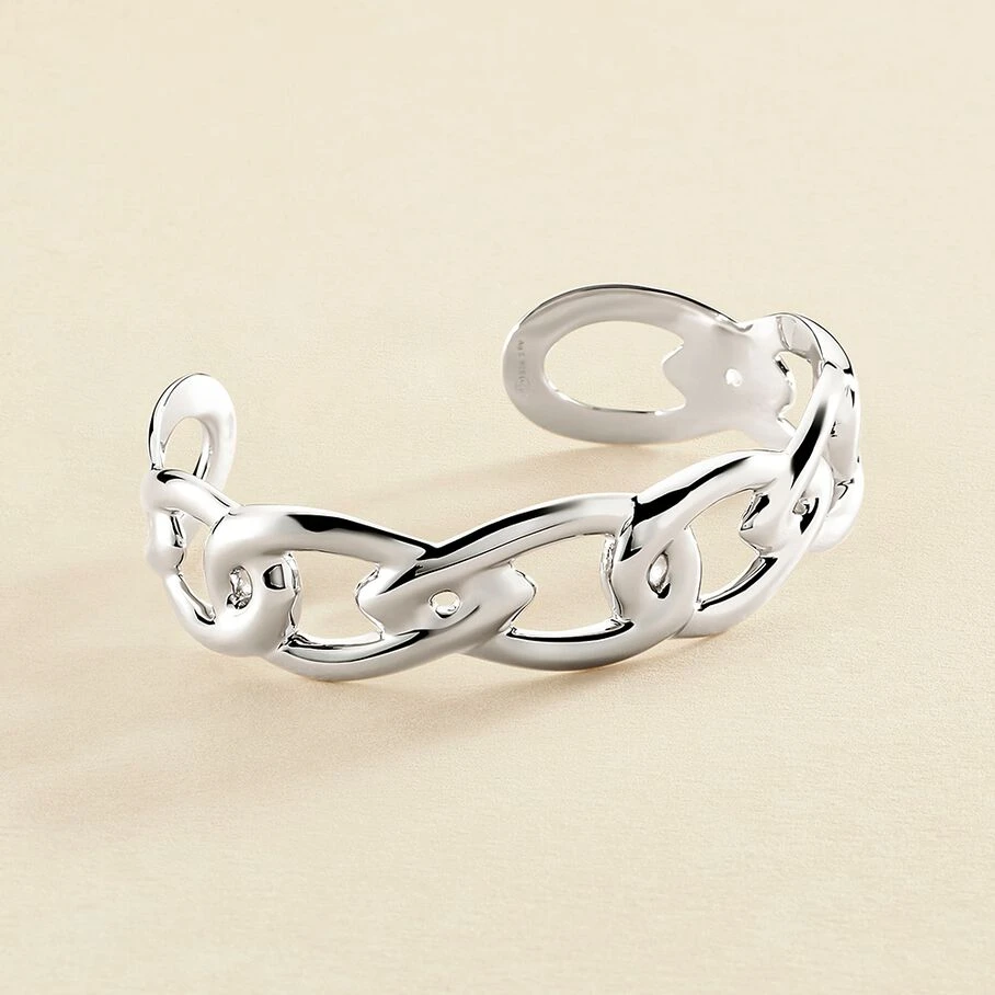 Manchette en argent véritable avec un jeu de maillons entrelacés.