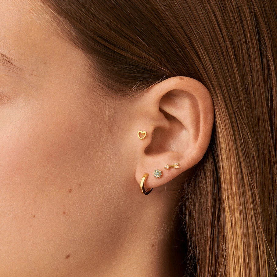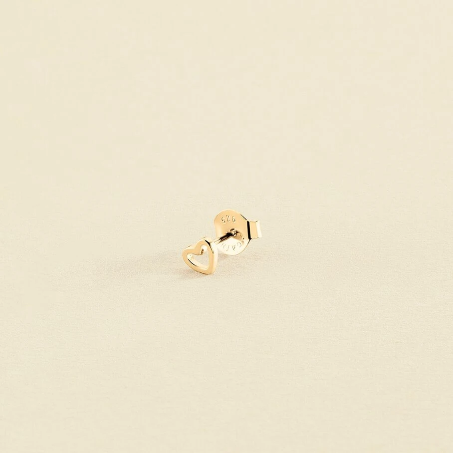 Boucle d’oreille puce en argent véritable doré 750/1000 en forme de coeur évidé. A l’unité, pour mieux les mixer et les accumuler.