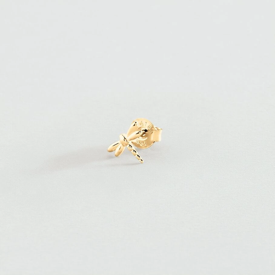 Boucle d’oreille puce en argent véritable doré 750/1000 en forme de libellule. A l’unité, pour mieux les mixer et les accumuler.