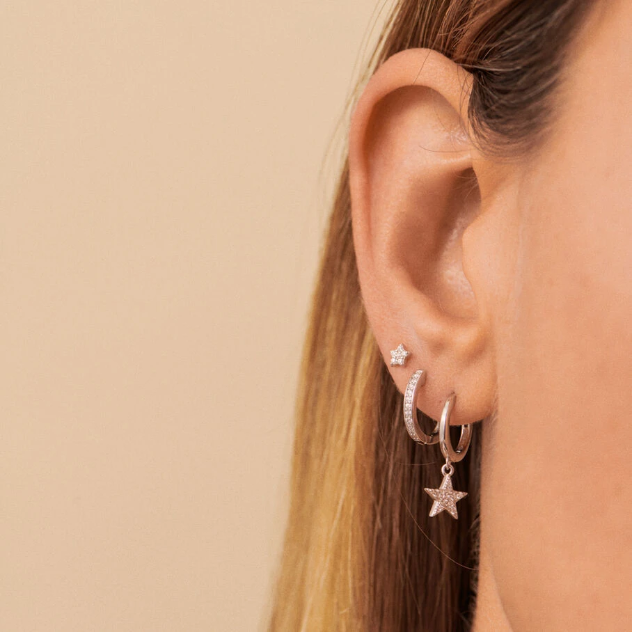 Boucle d’oreille puce, étoile pavée d’oxydes de zirconium, en argent véritable. Vendu à l’unité pour mieux les mixer.