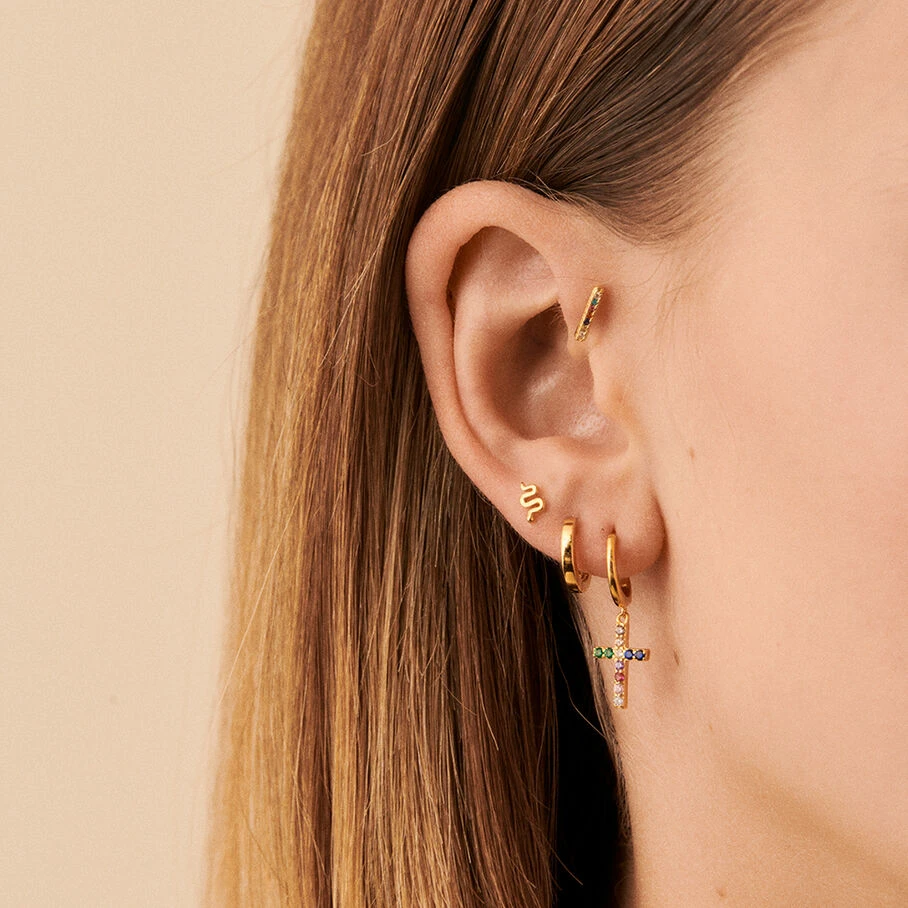 Boucle d’oreille puce, mini serpent en argent véritable doré 750/1000. A l’unité pour mieux les mixer et les accumuler.