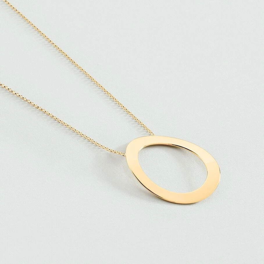 Sautoir en argent véritable doré 750/1000 orné d’un anneau plat évidé