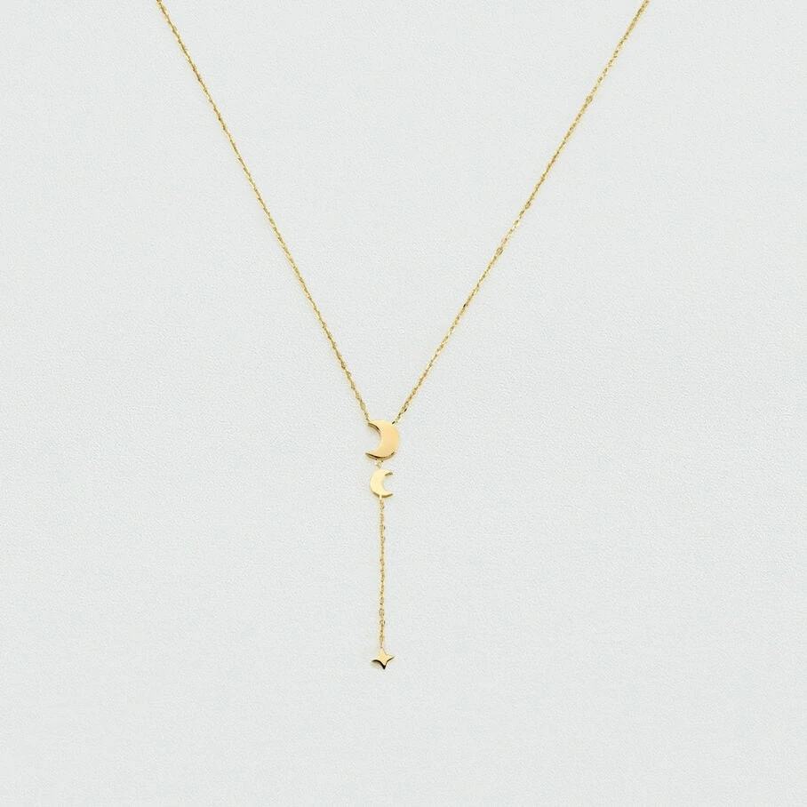 Collier Y, en argent doré 750/1000, dont les pendentifs, sur une fine chaine maille forçat, représentent le cycle lunaire